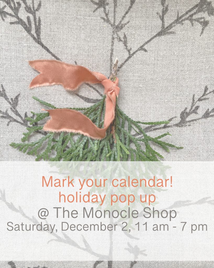 Join us at The Monocle Shop for festive shopping with a beautifully curated selection goods from local makers along with Monocle’s classic offerings. I will be there all day with my naturally dyed textiles.