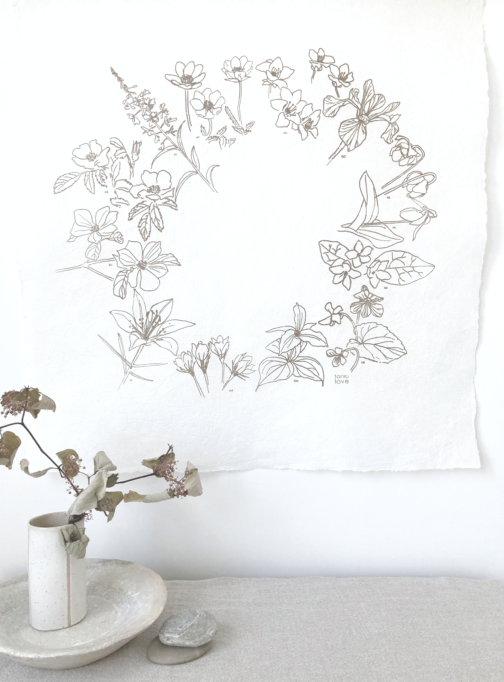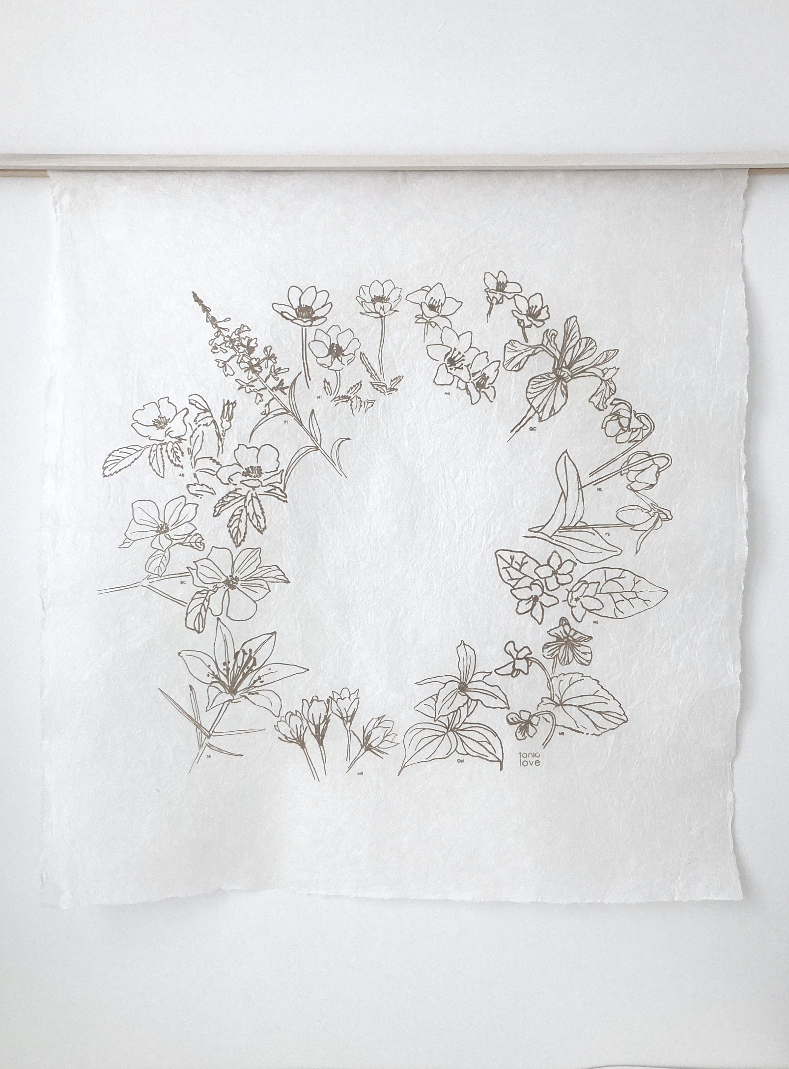 The piece features my drawings of the flower symbols for each of the Canadian provinces and territories.